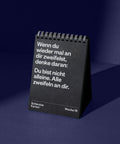Das Original, jetzt noch demotivierender: Der Tischkalender mit den bitter-schönen Wahrheiten für jede Woche, garantiert frei von toxischer Positivität und blindem Optimismus!