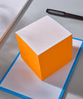 Ein besonderes Designmerkmal ist das 2 x 2 mm Karoraster in Neonorange auf der Oberseite – ideal für präzises Schreiben und Zeichnen. Der gesamte Block ist an allen vier Seiten in leuchtendem Neonorange bedruckt und fällt sofort ins Auge – auch im kreativsten Chaos.